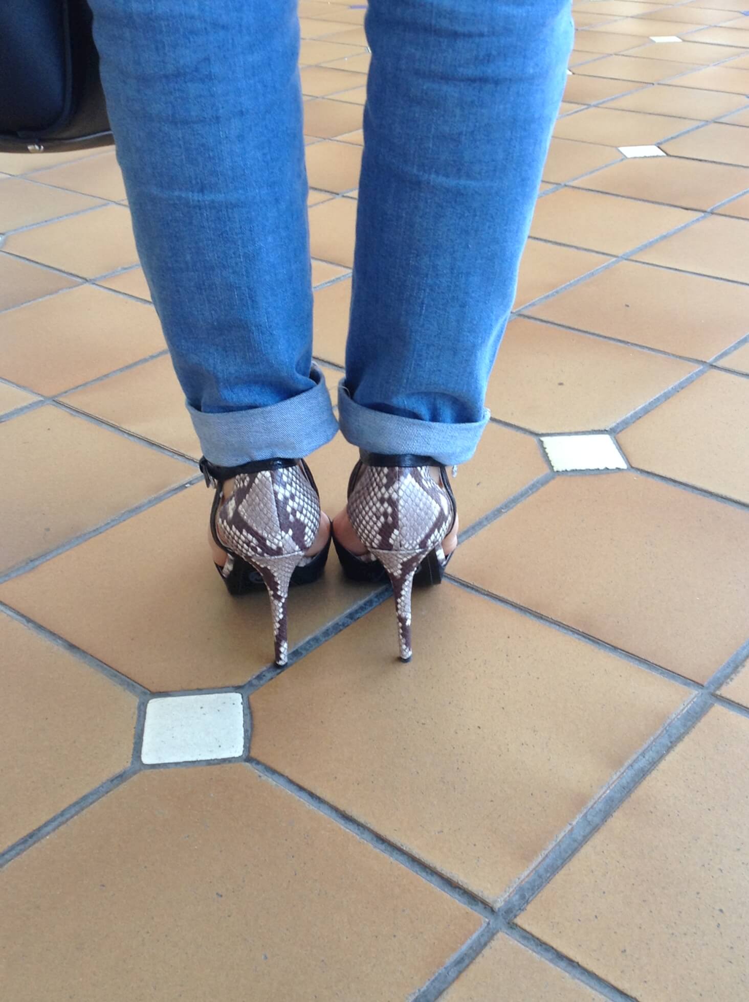 Combinei  com umas sandálias fabulosas, uma mala e com um colar XXL!